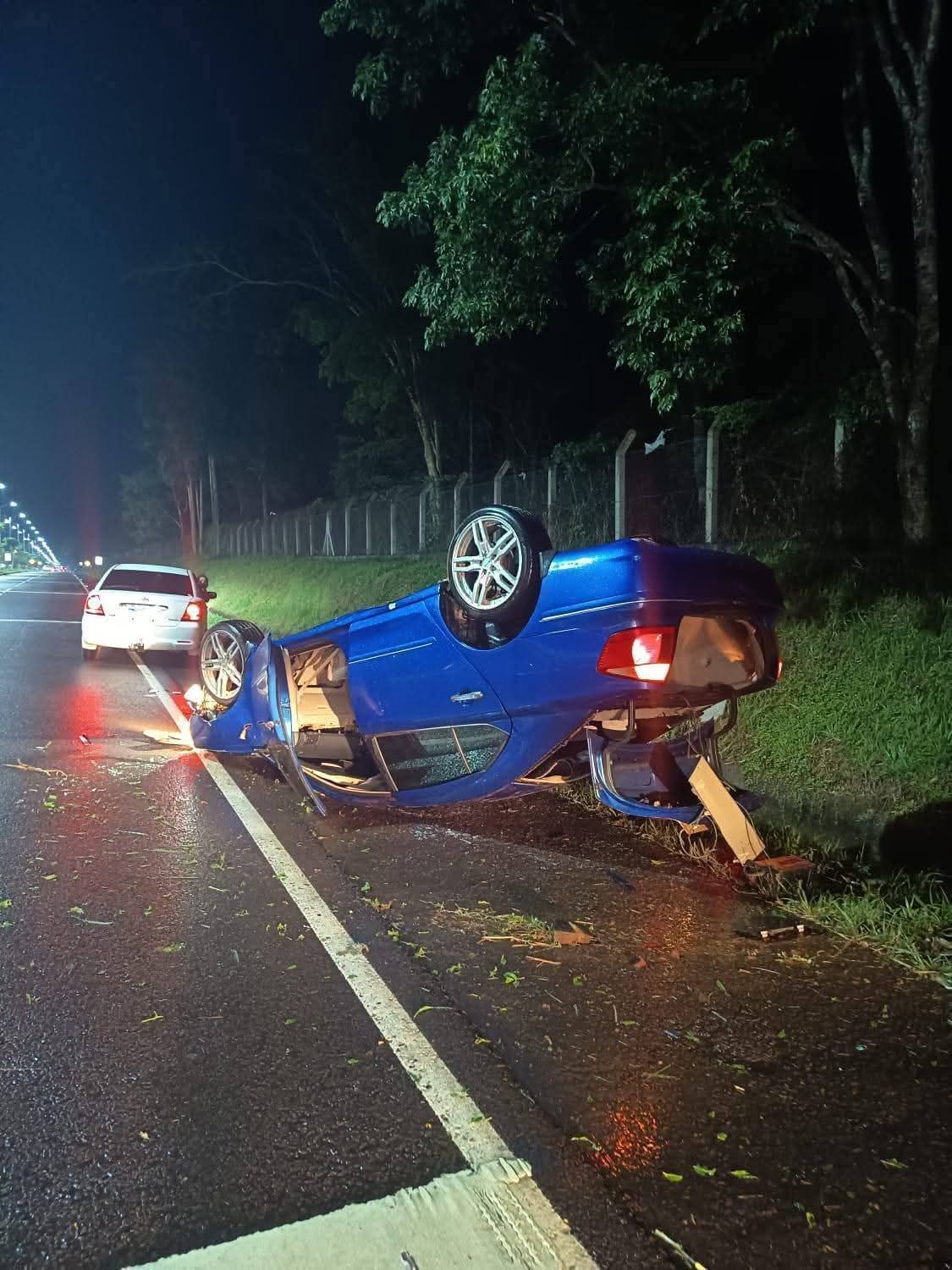 Ésta noche se registró un vuelco de vehículo en la Avenida PY ex Avda Itaipú de 29 de Septiembre, afortunadamente sin víctimas fatales. El accidente fue provocado por la caída de un árbol que obstaculizaba la vía.