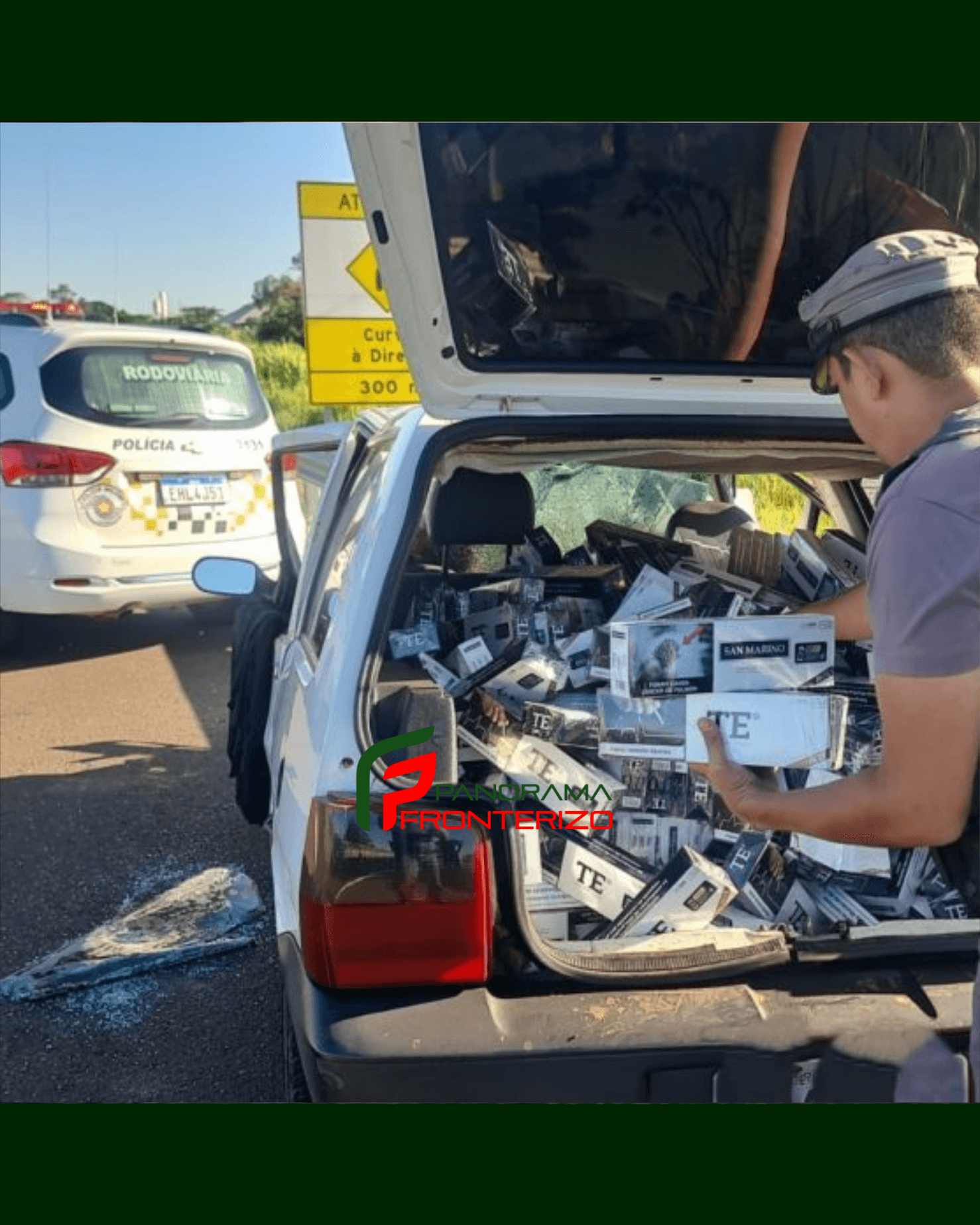 O veículo transportava aproximadamente oito caixas, contendo 400 pacotes de cigarro totalizando quatro mil maços.