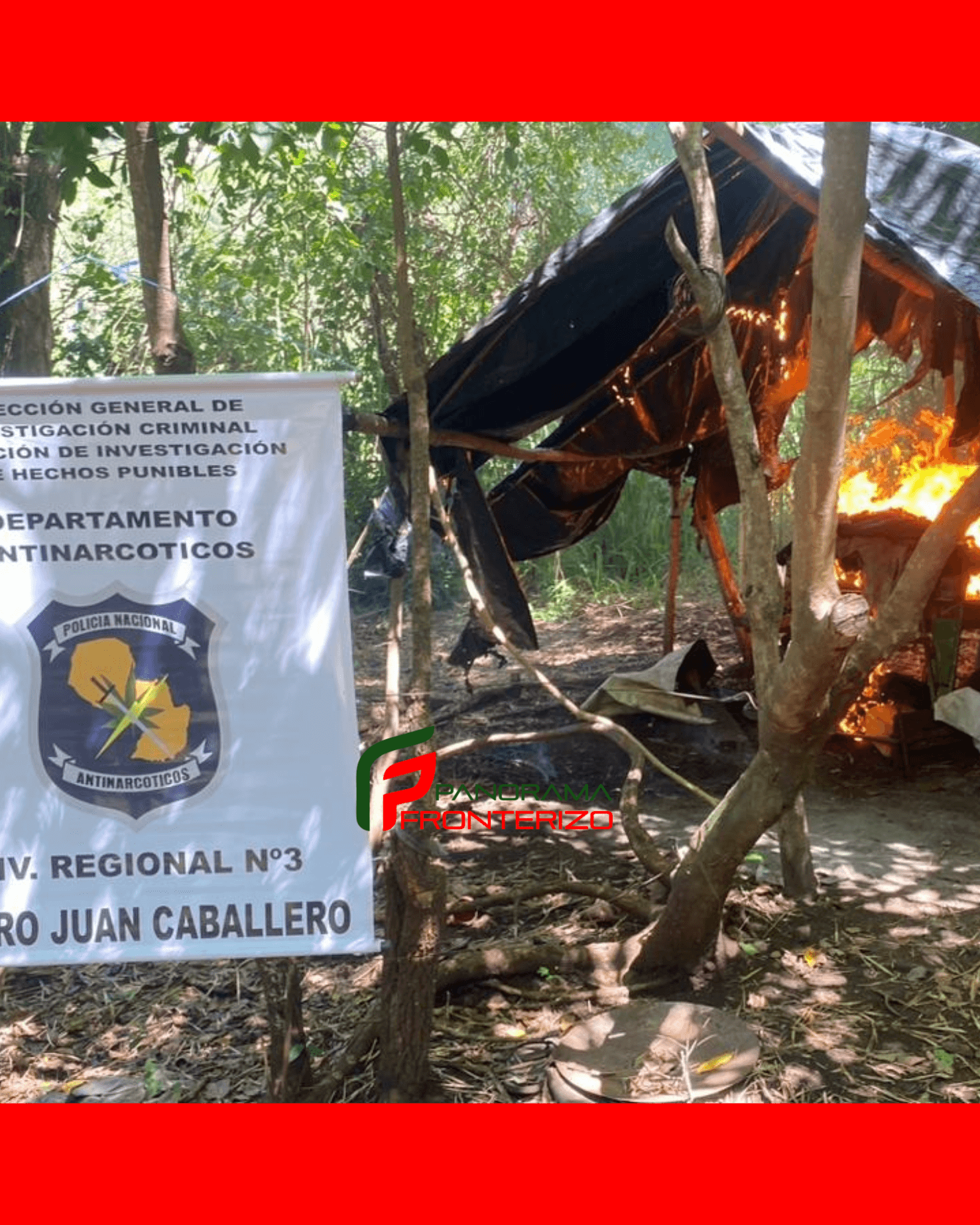 El operativo fue encabezado por el agente fiscal Celso René Morales y realizado por agentes del Departamento de Antinarcóticos Regional N° 3 de Pedro Juan Caballero, en un inmueble rural situado en la colonia Fortuna Guazú del distrito de Zanja Pytã.