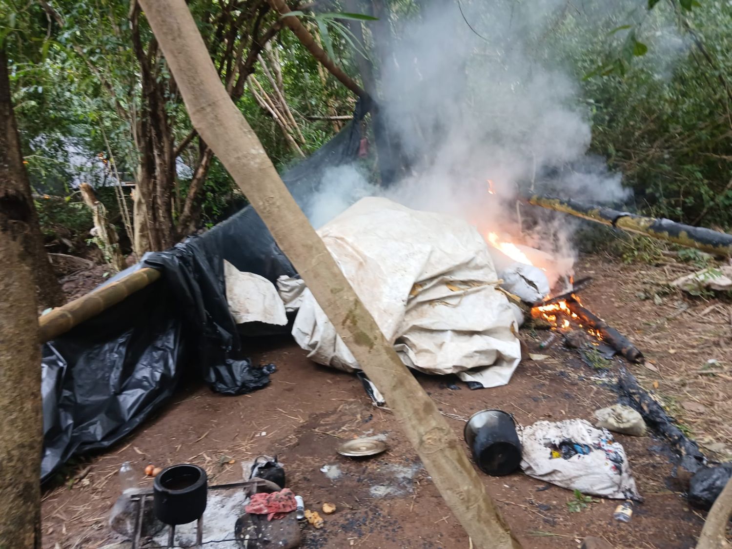 Además de la erradicación de los cultivos, las autoridades procedieron a la quema de cuatro campamentos precarios que servían de base logística y vivienda para los productores de la droga. En estas estructuras se hallaron diversos enseres de subsistencia y herramientas industriales, tales como una prensa rústica, dos guillotinas, quince zarandas y ocho gatos hidráulicos utilizados para el prensado de la droga.