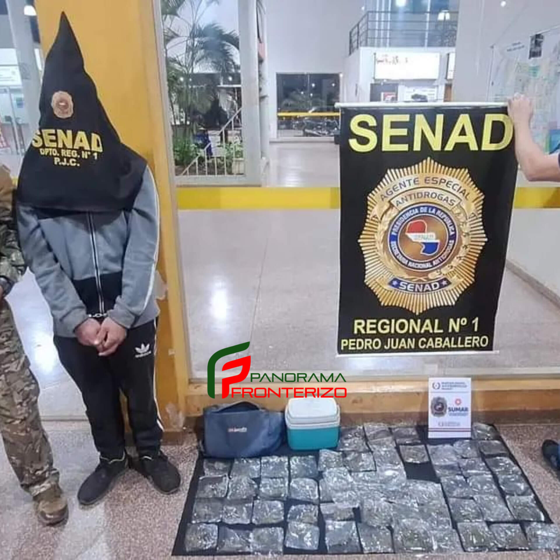 Se trata de José Miguel Cardozo, de 33 años. El mismo venía a bordo de un ómnibus desde Santa Rosa del Aguaray con destino a Pedro Juan Caballero. Agentes de la SENAD manejaban información de que un pasajero estaría transportando en medio de su equipaje drogas prohibidas, informó el fiscal Celso René Morales.