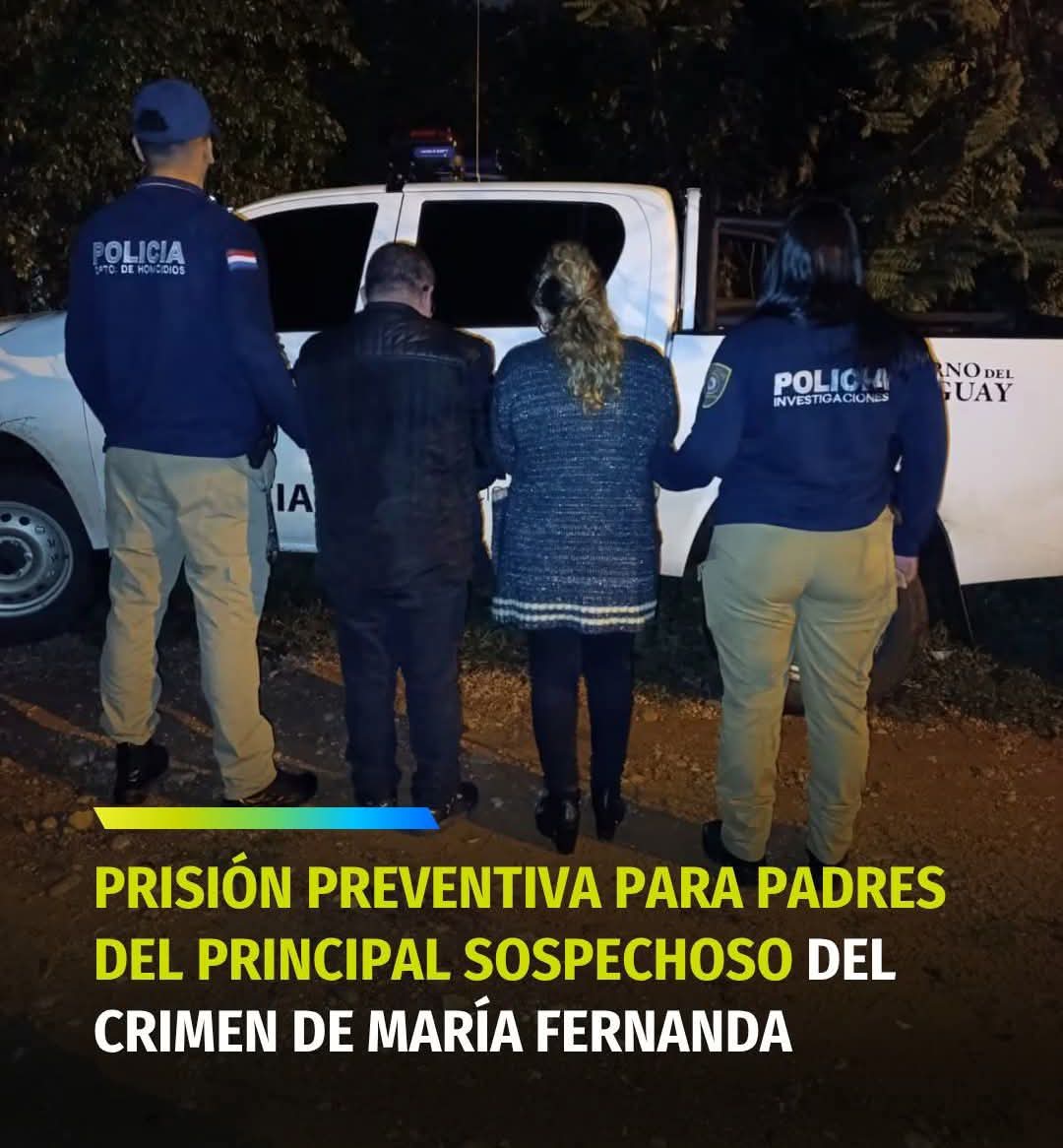 ▪️El juez penal de Garantías Armando Mendoza ordenó la prisión preventiva de los padres del adolescente señalado por el asesinato de María Fernanda Benítez (17), ante el riesgo de fuga y por posible entorpecimiento de la investigación.