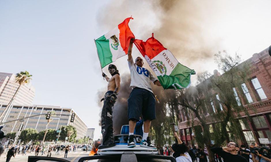 En las recientes protestas en Los Ángeles se han visto varias banderas de México ondeando entre los manifestantes. En algunos casos la bandera mexicana ha estado presente en situaciones de violencia como la quema de autos. Para algunos, el uso de este símbolo patrio en este contexto es inapropiado, mientras que para las autoridades de EE.UU. es un ejemplo de caos, ley y orden.