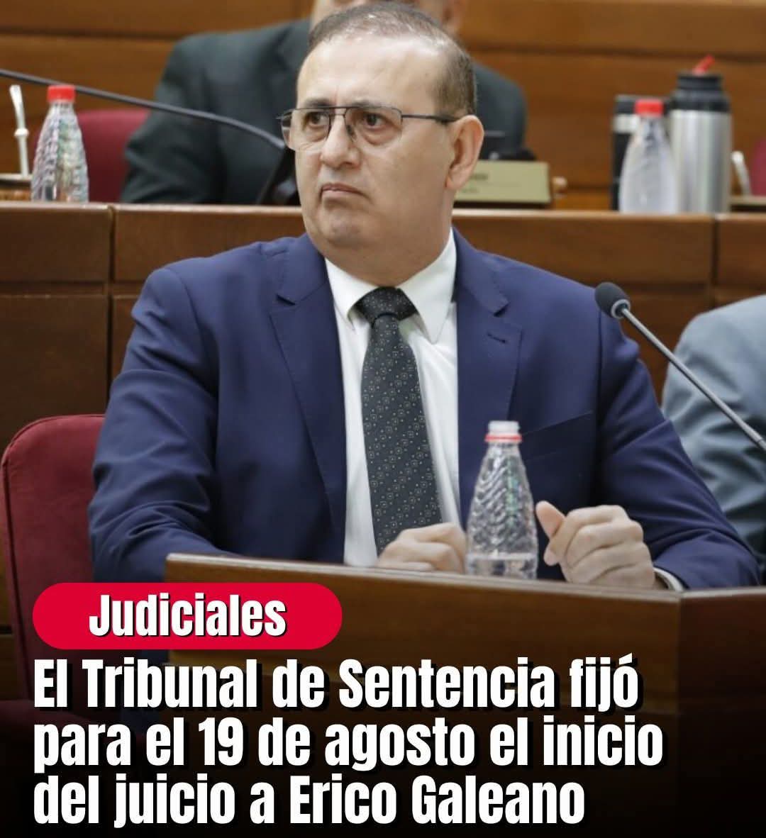 📍El Tribunal de Sentencias Especializado en Crimen Organizado, presidido por el juez Paublino Barreto, fijó el inicio del juicio oral y público al senador colorado Erico Galeano Segovia para el martes 19 de agosto a las 8:00.