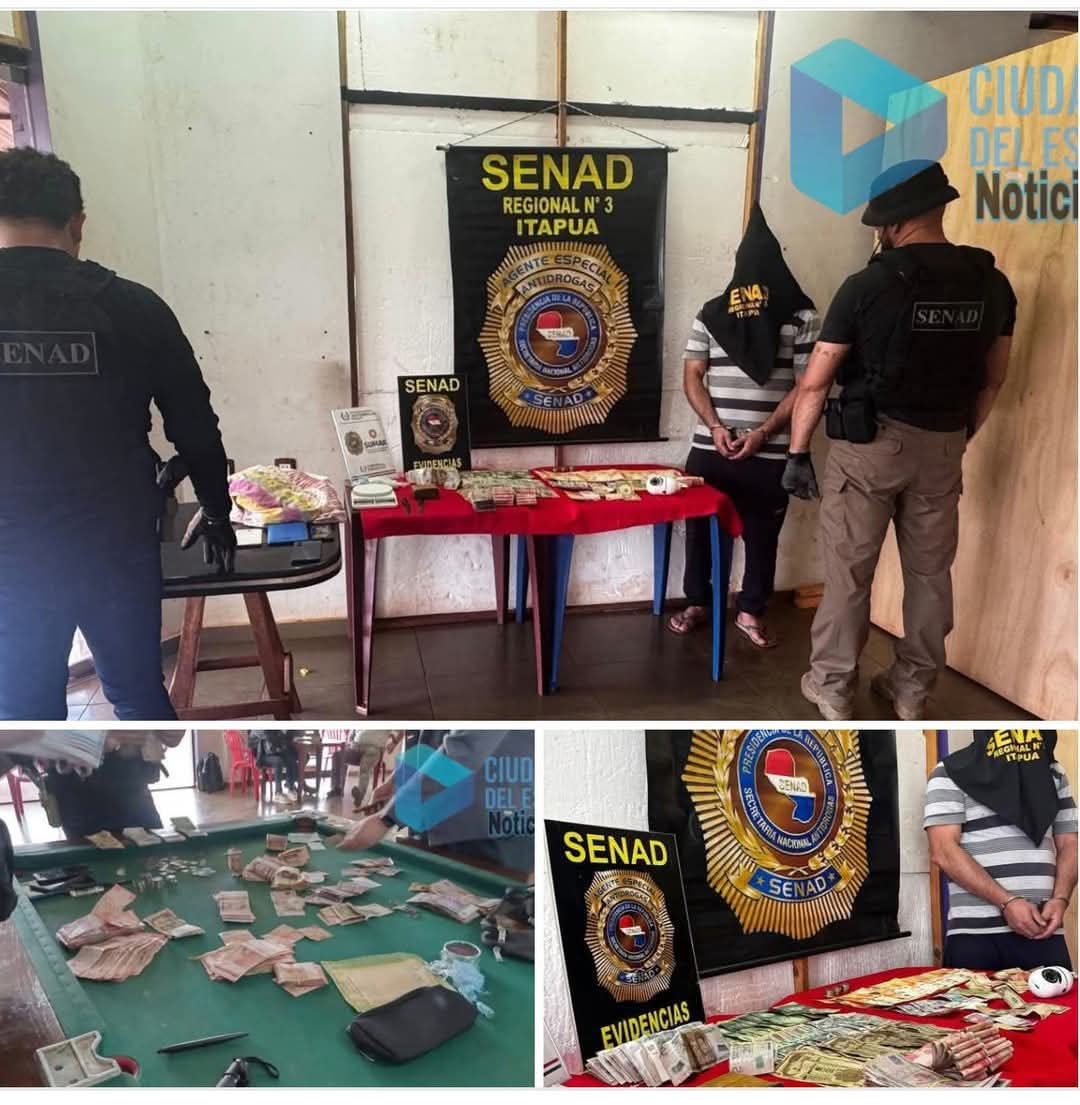 La SENAD desmanteló un punto de venta encubierto en Hohenau que operaba como bodega y salón de billar, pero que en realidad era una fachada para la venta de drogas. Incautaron marihuana, dinero en guaraníes y moneda extranjera, una balanza, celulares y otros elementos ligados al microtráfico.