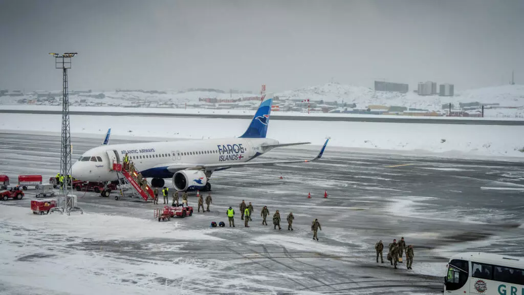 Soldados daneses desembarcan en el aeropuerto de Nuuk, Groenlandia, 19 de enero de 2026. via REUTERS – Mads Claus Rasmussen