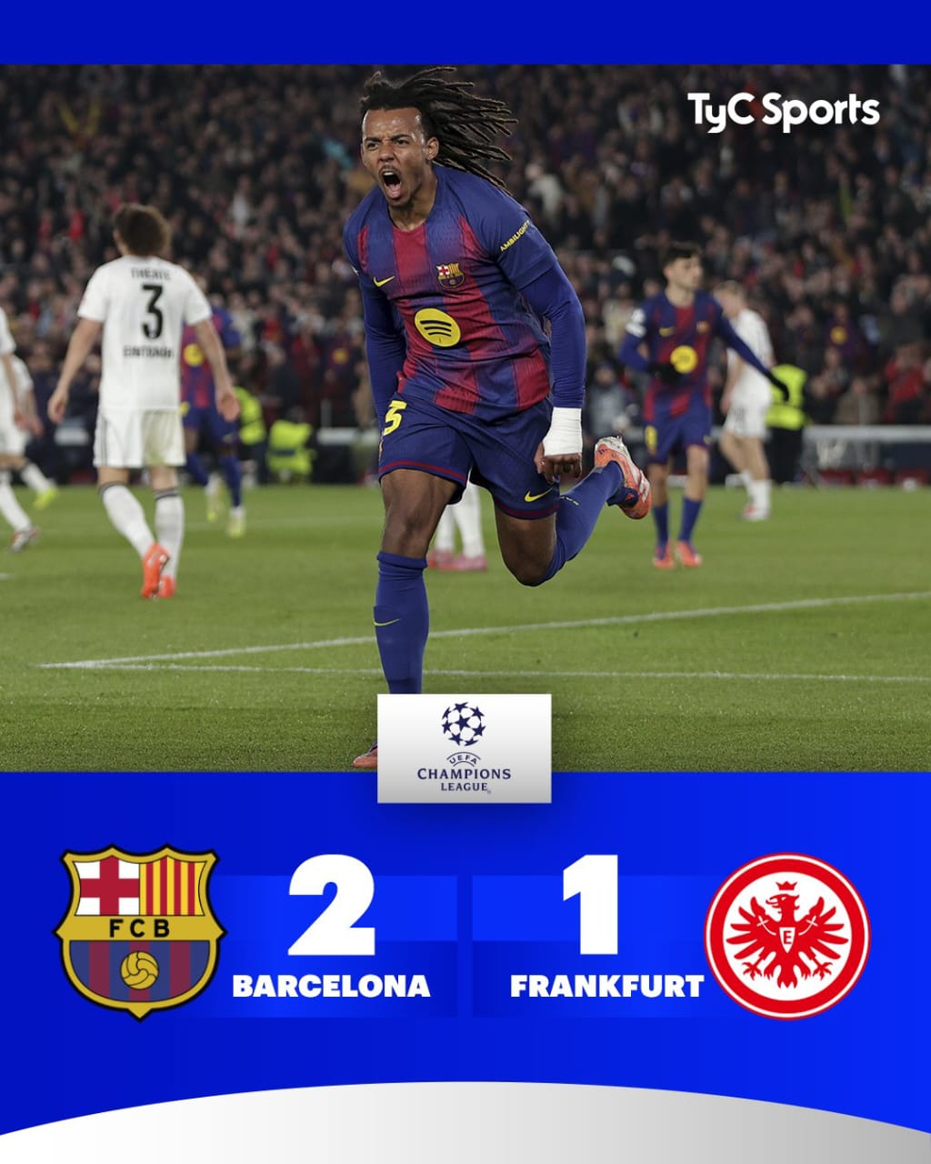 El conjunto Culé triunfó como local ante el Eintracht Frankfurt por 2-1 gracias al doblete de Jules Koundé. Knauff había adelantado a la visita. #ChampionsLeague