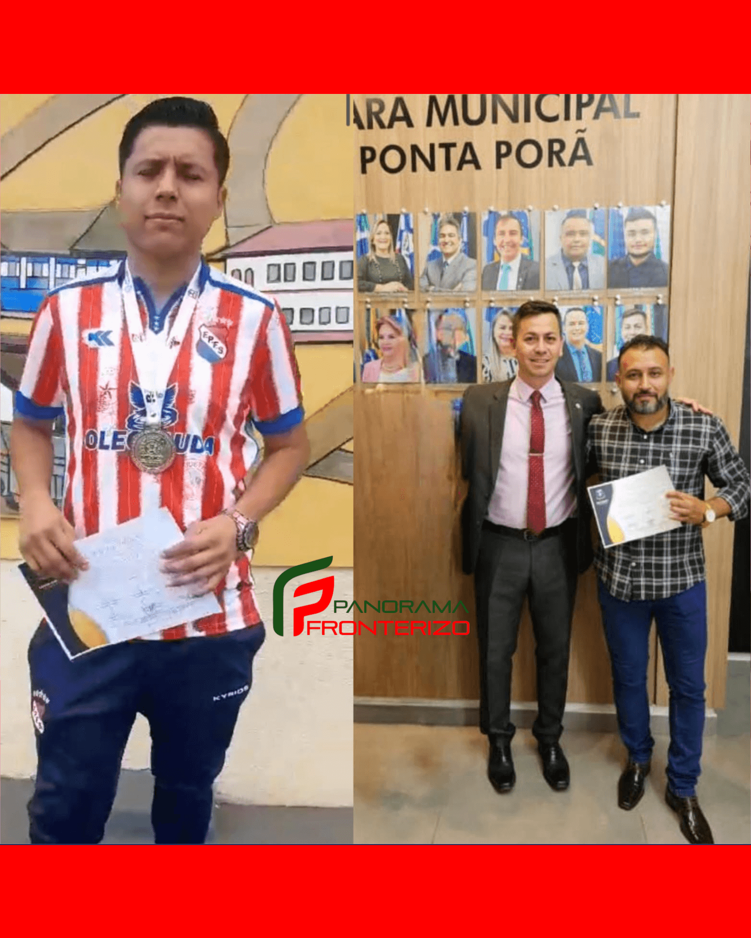 La Cámara Municipal de Ponta Porã ha rendido un cálido homenaje a dos destacadas figuras del fútbol: Javier Villarreal, ex campeón con Boca Juniors y actual entrenador del América FC de Pedro Juan Caballero, y Daniel Benítez, campeón mundial con la Selección Paraguaya de Futbol de Salón y ex jugador de la Selección de Amambay. Ambos fueron distinguidos como futbolistas ilustres.