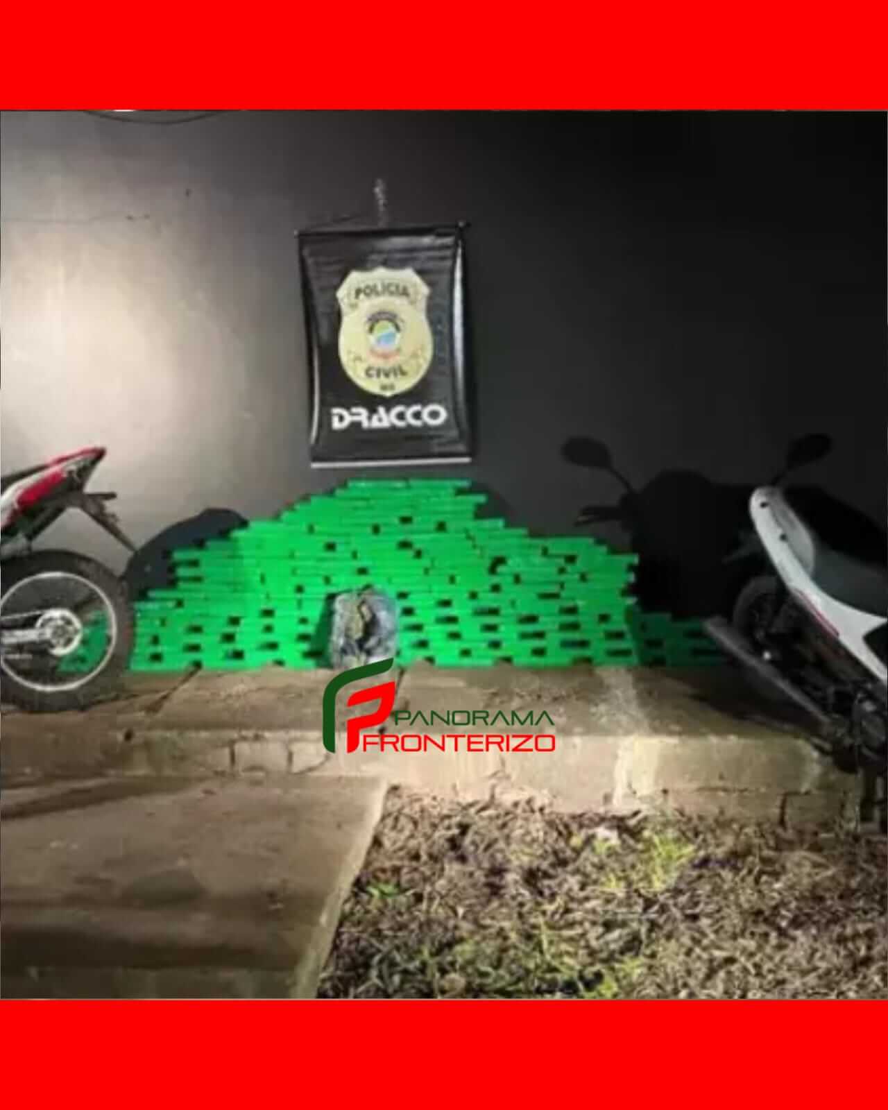 O Dracco (Departamento de Repressão à Corrupção e ao Crime Organizado) da Polícia Civil de Mato Grosso do Sul apreendeu maconha avaliada em R$ 310 mil e duas motocicletas. A ação ocorreu na cidade de Coronel Sapucaia, próxima à linha internacional que separa o Brasil do Paraguai.