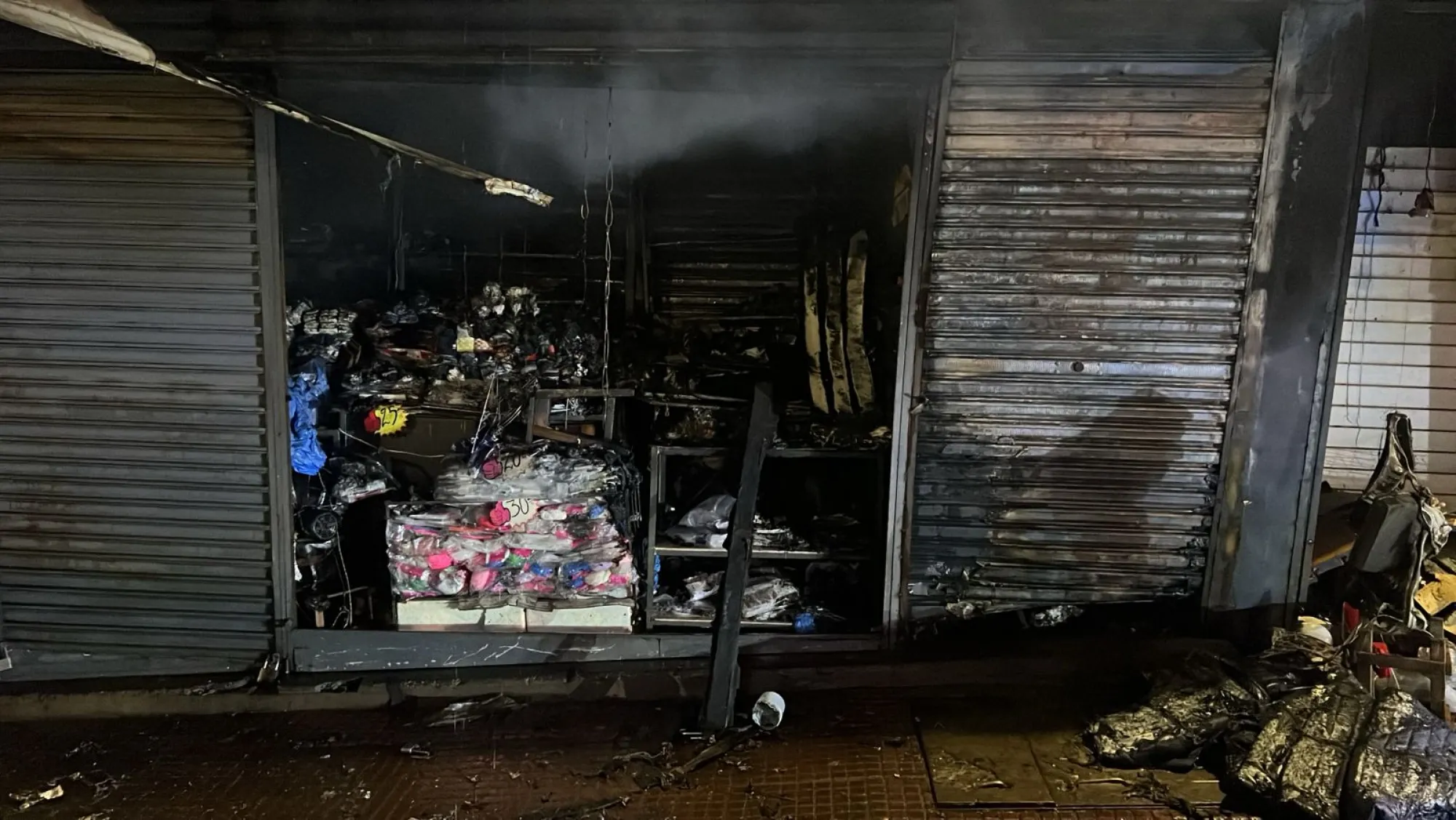 Los artículos exhibidos en una casilla comercial quedaron consumidos por las llamas tras un incendio en Ciudad del Este.Foto: Wilson Ferreria.