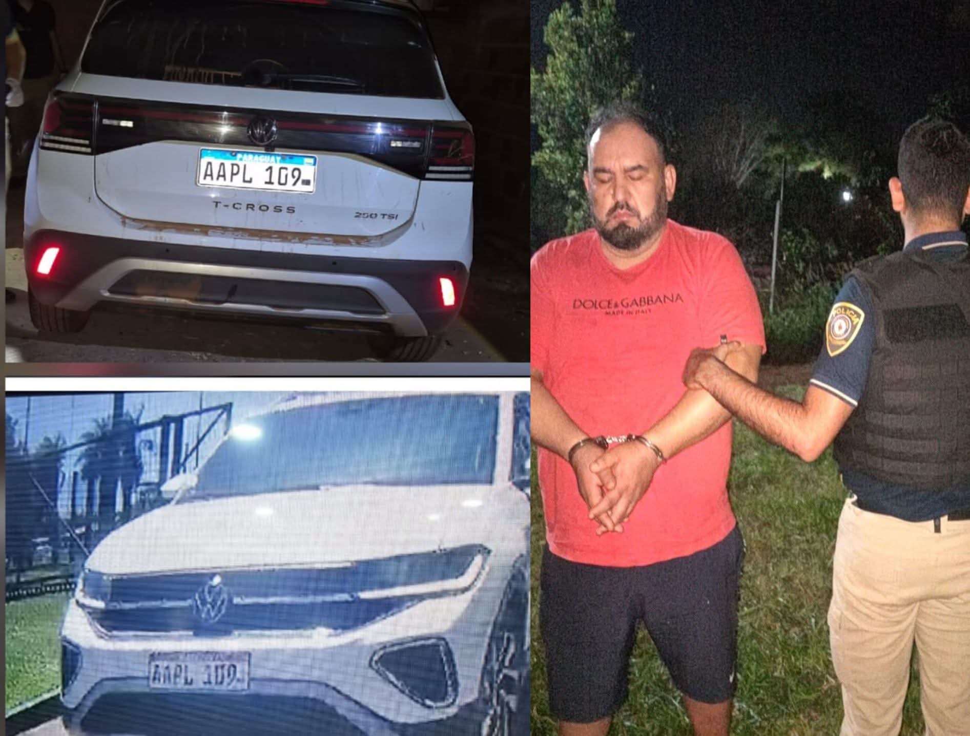 Un vehículo *Volkswagen T-Cross* fue hallado en un galpón de la *Colonia Potrero Sur*. El detenido es *Ovidio César Fischer Mussi*, sospechoso de haber sido el conductor durante el ataque.