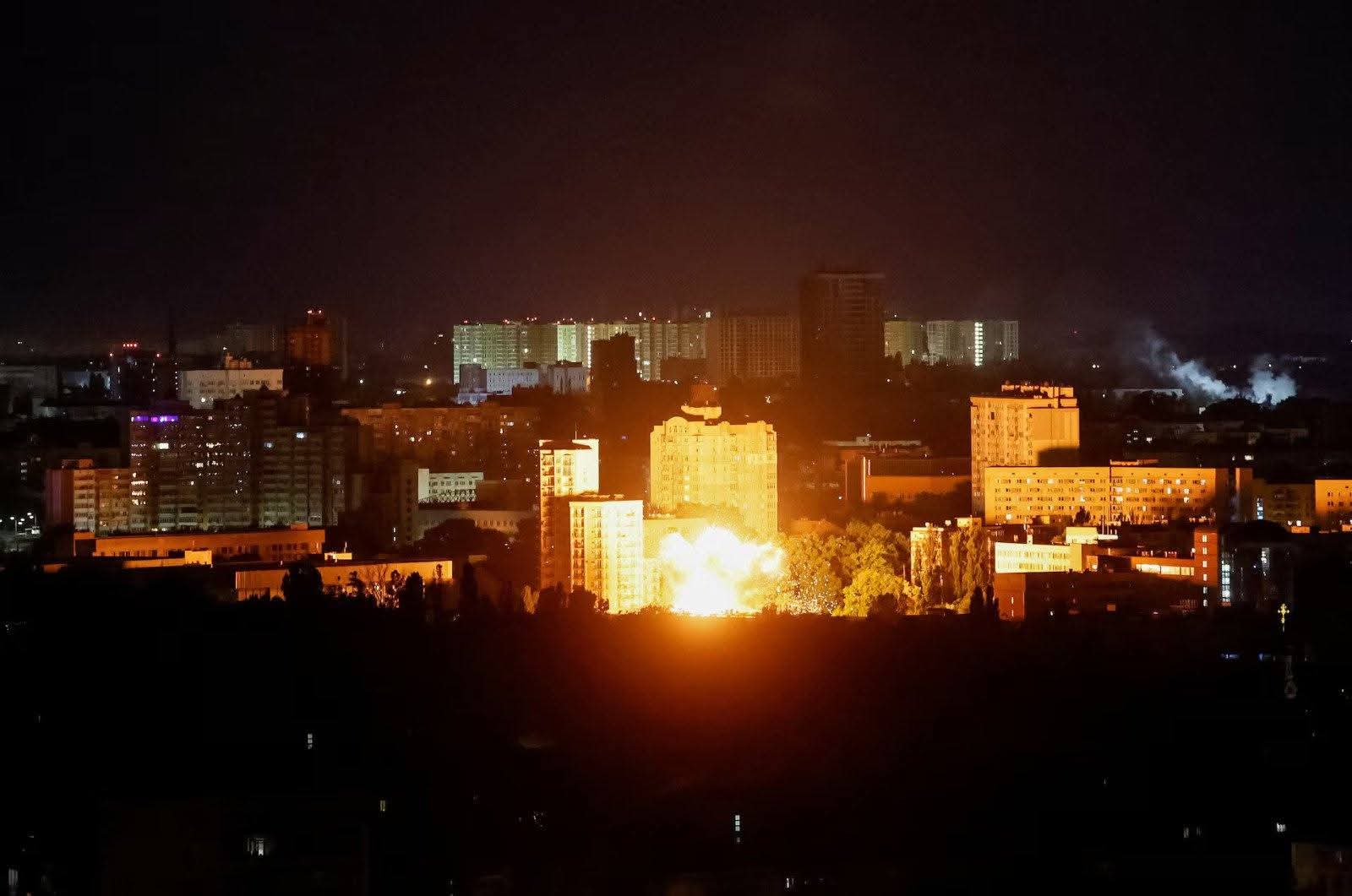 Un rascacielos residencial fue alcanzado, las entradas de la estación de metro fueron dañadas y los incendios se produjeron en 6 distritos de la ciudad.