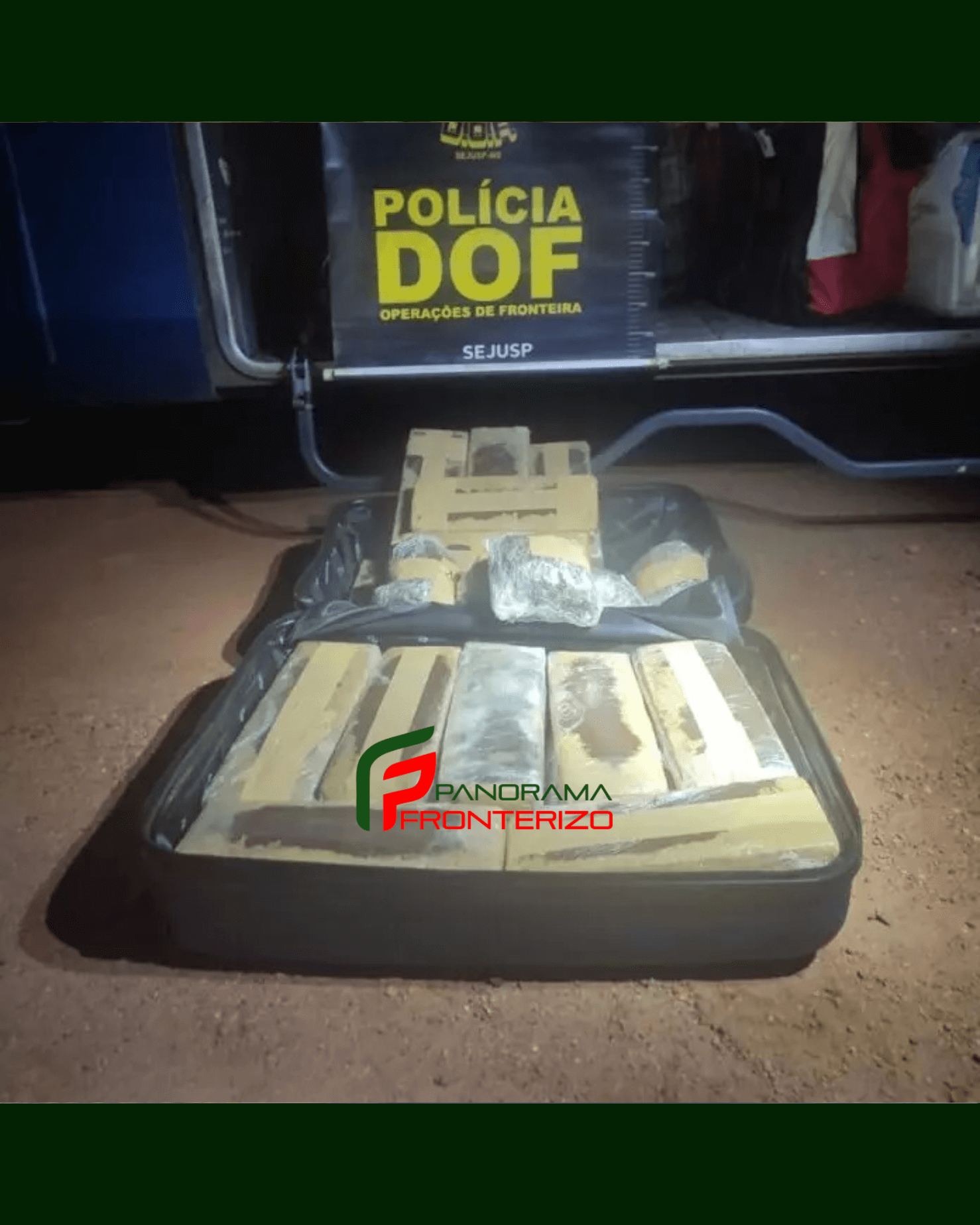 Os militares realizavam um bloqueio policial para fiscalização na rodovia MS-164, área rural de Ponta Porã, quando abordaram um ônibus de passageiros que seguia no sentido Ponta Porã a Campo Grande. Durante a vistoria no compartimento de bagagens localizou-se uma mala de cor azul, onde estavam 20 quilos de maconha e 1,5 quilos de skank.