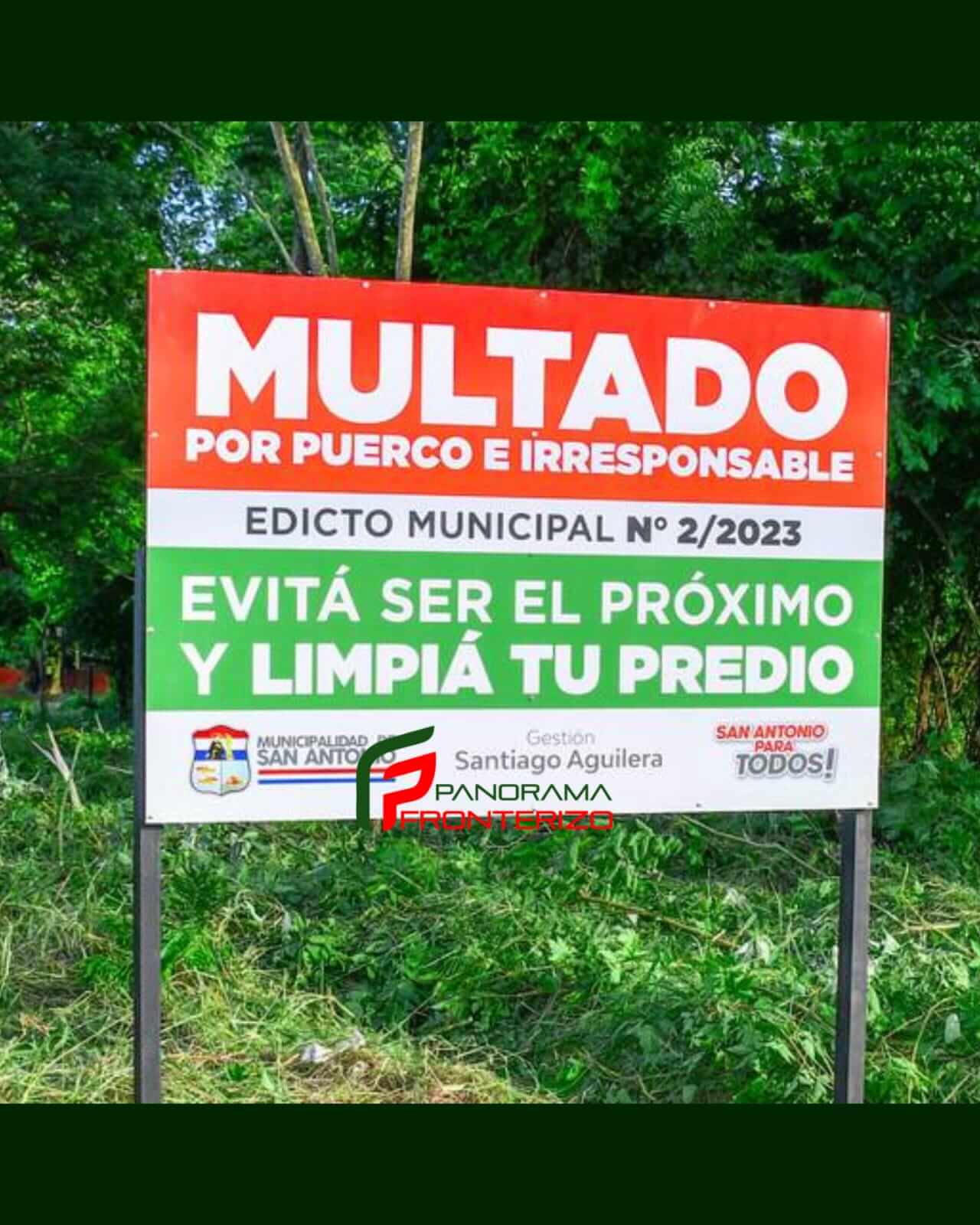 Desde esta semana, el municipio empezó a colocar letreros en propiedades descuidadas y abandonadas, advirtiendo a los dueños con la frase: “Multado por puerco e irresponsable… evitá ser el próximo. Limpiá tu terreno”.