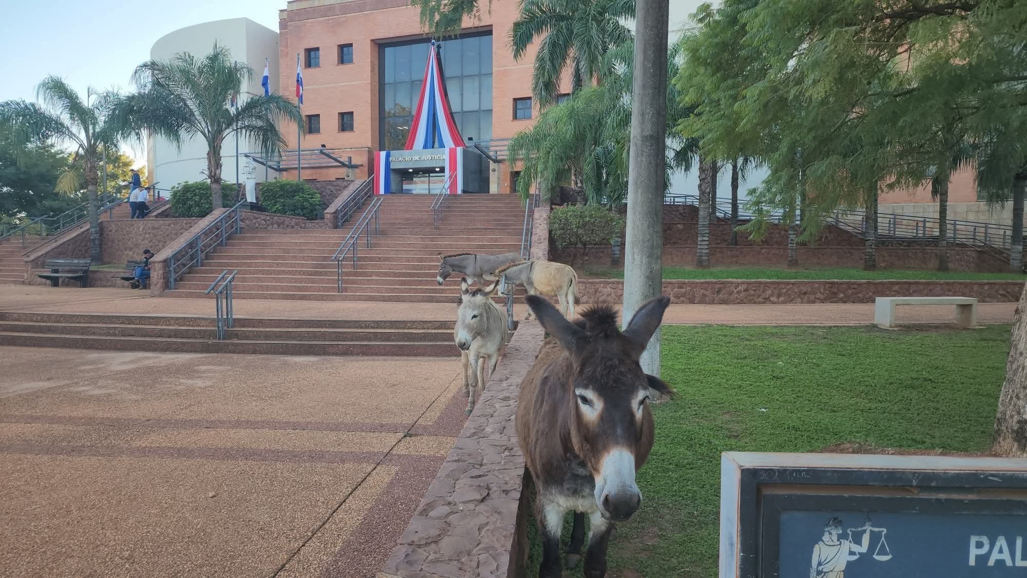 Cuatro burritos decidieron tomarse el martes con calma… ¡paseando frente al Palacio de Justicia de Concepción como si nada! 😅