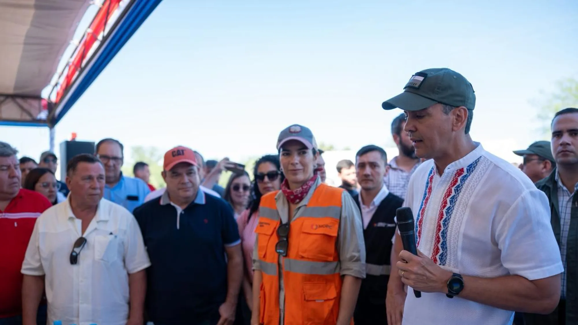El presidente Santiago Peña encabezó este lunes el acto donde se realizó la primera vertida de concreto hidráulico en una pista de prueba con pavimento rígido sobre la ruta PY05, en el marco de las obras del tramo Concepción-Pozo Colorado. Fue en el tramo comprendido entre los kilómetros 407,9 y 408,1, en las inmediaciones del puente Nanawa, que conecta los departamentos de Presidente Hayes y Concepción.