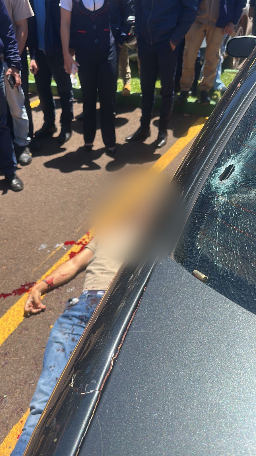 Imágenes viralizadas en redes sociales muestran a la víctima fatal tendida en el suelo, al costado de un automóvil y con remera marrón y pantalón vaquero azul. El ataque se produjo en el momento en que personas llegaban y salían del shopping para realizar compras.