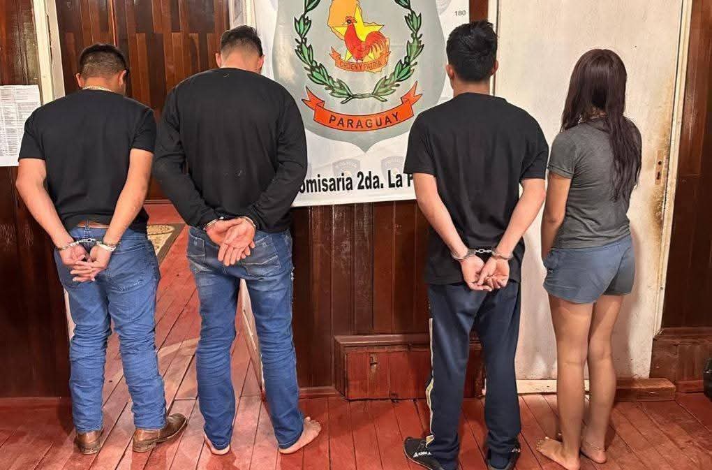La Policía Nacional detuvo a cuatro personas en el marco de la investigación sobre el incidente registrado en una discoteca de la ciudad de Puente Kyjhá, donde dos hombres resultaron heridos con arma de fuego. El procedimiento se realizó en el barrio Jamaica de La Paloma del departamento de Canindeyú, tras un trabajo de inteligencia que permitió allanar un inquilinato en el que se encontraban los presuntos implicados.