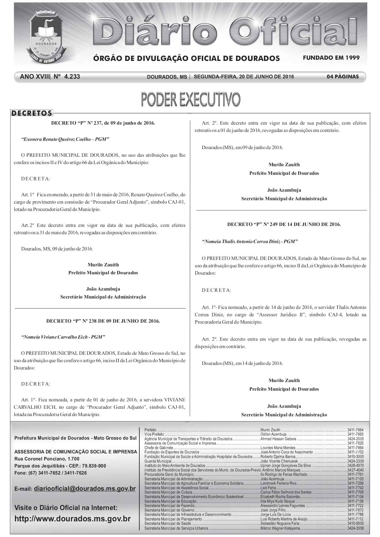 Thalis Diniz, procurador do município de Dourados, foi nomeado para o cargo em 2016, conforme descrito no PDF oficial de nomeação enviado a esta reportagem. Diniz, que ocupa um posto de alto escalão no jurídico da prefeitura, teria sido responsável pela elaboração de um relatório que minimiza as evidências de irregularidades e exonera a administração municipal de qualquer envolvimento ilícito no contrato milionário de robótica.