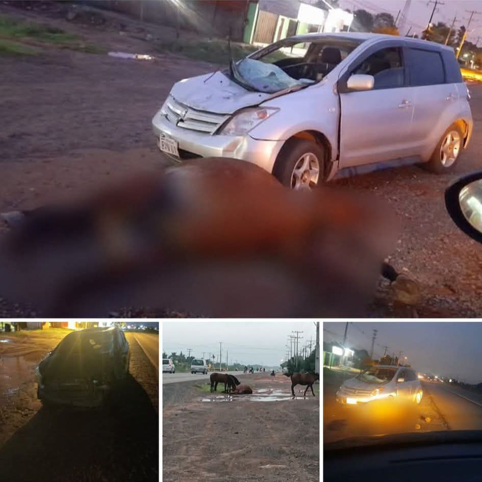 Dos automóviles colisionaron contra caballos en plena vía pública. Afortunadamente, los conductores salieron ilesos.