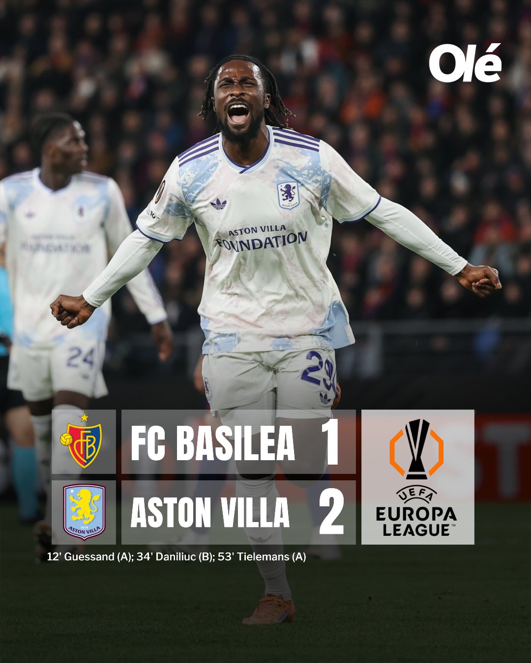 🏴󠁧󠁢󠁥󠁮󠁧󠁿 El equipo de Dibu Martínez (que hoy no jugó) ganó 2-1 frente a Basilea en Suiza y trepó al tercer puesto con 15 unidades.
