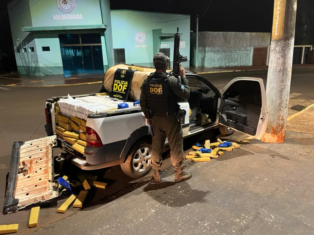 La Policía Militar del Departamento de Operaciones de Frontera (DOF) recuperó una camioneta Fiat Strada la ciudad brasileña de Maracaju que había sido robada en el estado de Paraná. El vehículo transportaba más de 920 kilos de marihuana y skunk en el momento de su incautación.